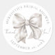 Un autocollant classique et élégant à arc blanc avec douche de nage avec un arc à eau doux et blanc surdimensionné. En haut, il y a le nom et la "Fête des mariées" de la future mariée et en bas, la date. Au centre, à côté de l'arc blanc, se trouve "Merci !" en écriture gracieuse. Ce design de douche nuptiale simple et intemporelle utilise du texte gris dans un mélange de serif et de typographie de script, créant un look raffiné mais charmant. Vous pouvez customiser les couleurs de police et l'arrière - plan pour convenir à votre style. Fête des mariées à thème Merci Elegant Aquarelle blanche Étiquette à chevalet de .