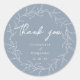 Sticker Rond Merci de Mariage à feuilles minimales bleu poussié