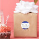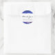 Sticker rond Mariage bleu peint Merci classique. Texte noir et gris personnalisable sur blanc. Arêtes ornées d'extraits imprimés d'oeuvres d'art originales, Abstraites en Blues, peintes en huiles avec brosse et couteau par artiste fin vivant. L'oeuvre présente des teintes blanches, bleues, marines, ultramarines, violettes, violettes et mauves. Personnalisez avec le nom de la mariée et du marié et la date du mariage, vous pouvez ajuster l'exemple de texte et/ou de couleurs comme vous le souhaitez. Excellent pour favoriser les étiquettes et les scellés d'enveloppe. Visitez notre magasin Austen & Grace pour voir la suite mariage complète, les produits correspondants et plus encore, et contactez-nous si vous avez besoin d'aide contact@austenandgrace.com