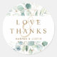 Ce mariage vous remercie autocollant caractéristiques peintes aquarelle eucalyptus, vert botanique et feuilles de parties scintillant or avec script or.