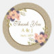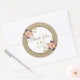 Rustique, élégant mariage vintage or merci autocollant pour les faveurs, avec des fleurs rose aquarelle et chic poka motif point.