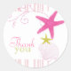 Estarfish rose et vert clair, coquille de plage, rayures roses et tourbillons illustrés sur les stickers de Merci de mariage personnalisés. Tous les exemples de texte peuvent être entièrement personnalisés avec votre propre libellé. N'hésitez pas à modifier les tailles, les couleurs et les polices du texte. (Vous pouvez trouver les essentiels et les faveurs mariages correspondants dans ce magasin, le paradis nuptial. Contactez ujean4791@gmail.com pour un travail personnalisé et/ou la coordination de la papeterie mariage.))