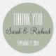 Un mariage simple et élégant, merci stickers en vert. Personnalisez avec les noms des mariés et des mariés et la date du mariage. Tous les textes sont personnalisables. Vous pouvez modifier la police de texte, la taille et la couleur à l'aide de l'option de modification. Veuillez contacter pour toute aide sur la personnalisation ou si vous avez besoin d'une autre couleur pour correspondre à vos couleurs mariages.