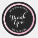 Sticker Rond Merci de Parties scintillant noir et rose personna