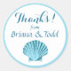 Ce joli autocollant de remerciement rond présente un coquillage bleu à coquilles Saint-Jacques sur une bordure blanche arrière - plan & cercle bleu. Produits correspondants disponibles. POUR VOIR LA COLLECTION ENTIÈRE, VISITEZ LE SITE : glamprettyweddings.com. Disponible en 7 couleurs glamtastiques : rose, lilas, aqua, bleu menthe, jaune, pêche, framboise. Utilisez le bouton "Customiser" pour personnaliser avec votre propre texte. Pour toute question ou demande personnalisée, envoyez un courriel à cheryl@glamprettyweddings.com/contactez. "Scallop Seashell Beach" design original par Cheryl Daniels © 2014.