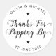 Un Autocollant Étiquette classique en Merci noir avec "Merci pour Popping By" dans une calligraphie de police moderne et rustique. Vous pouvez facilement le personnaliser avec vos noms et date mariage.