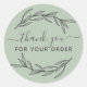 Art moderne ligne feuille de laurier "merci pour votre commande" avec police de script classique autocollant rond