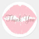 Forme de rouge à lèvres rose avec un message de remerciement.