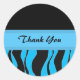 Sticker Rond Merci d'impression noir et bleu Zebra