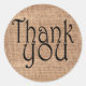 Un simple stickers de remerciement avec une touche rustique ajoutée par l'impression d'image de burlap sur l'arrière - plan.Un script de typographie élégant de remerciement texte en noir vous aide à montrer votre appréciation à toute occasion qu'il soit mariage, douche nuptiale, graduation, événements professionnels ou d'entreprise.