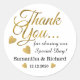 Des autocollants de mariage élégants et élégants avec de l'or remercient la typographie et les coeurs d'or.Personnalisez avec les noms de mariée et de mariée et la date mariage.