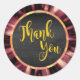 Carte de remerciements noire rayée en or écrit autocollant apt pour apparaître sur le faire-part de mariage.