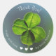 Sticker Rond Merci Fabriqué avec Love Vert Quatre Feuilles Clov