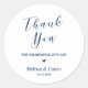 Merci pour fêter avec nous des autocollants. C'est un autocollant parfait à utiliser dans votre mariage ou autre célébration, par exemple, fête d'anniversaire, fête d'anniversaire, Baby shower, répétition mariage, cadeaux pour les invités, autocollants de faveur, et d'autres. Police bleu marine.