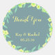 Idéal pour une fête de fiançailles, ces autocollants verts fleuris vous remercient. Afficher un arrière - plan vert avec une couronne bleue et jaune, acheter une feuille aujourd'hui! Oeuvre créée par : AMBillustrations http://www.etsy.com/shop/AMBillustrations/