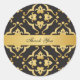 Un élégant autocollant de remerciement avec un motif floral damassé de lys en noir et or, avec un ruban d'or. Customiser le texte à utiliser pour un mariage ou toute autre occasion.