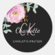 Sticker Rond Merci floral noir rose eucalyptus