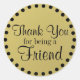 Cet autocollant de remerciement simple fait un choix réfléchi pour ajouter aux enveloppes de cartes de voeux, pour sécuriser le papier de tissu pour le giftwrapping, ou une foule d'autres utilisations. Express votre reconnaissance à des amis qui sont spéciaux pour vous. Montré ici avec du texte noir contre un arrière - plan de couleur dorée.