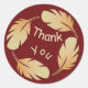 Express votre appréciation facilement et magnifiquement avec cet autocollant rond d'appréciation générale. Quatre plumes courbent le bord extérieur de cet autocollant créant une place au milieu pour votre parole de remerciement. Chaque plume présente des couleurs jaune et marron clair contre un arrière - plan rouge foncé. Les mots "merci" dans le centre peuvent être customisés pour répondre à vos besoins.