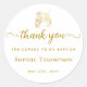 Un autocollant de remerciement élégant et classique qui présente de la calligraphie moderne, une colombe blanche recouverte d'or qui porte une croix blanche, pour un baptême religieux de petite fille ou de garçon ou tout autre événement d'église chrétienne.