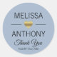 Sticker Rond Merci Gold Heart Dusty Blue Mariage Seals