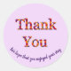 La location de maisons et de chambres est devenue de plus en plus populaire au cours des dernières années. Disposez votre location avec cet autocollant lumineux et gai qui offre un moyen peu coûteux de compléter votre séjour à l'hôtel. Les mots merci apparaissent dans un design cravate-teint sur cet autocollant rond. Le texte "Nous espérons que vous avez apprécié votre séjour" peut être customisé et forme un "sourire" au bas de l'autocollant. La couleur arrière - plan solide peut également être customisée si vous le désirez.