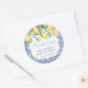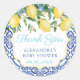 autocollants de Merci pour tout événement (illustrés ici pour un Baby shower mais tous les champs de texte sont personnalisables). Le design présente des citrons aquarelle contre un arrière - plan d'un azulejo bleu et blanc vintage.