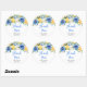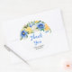 Ce sticker de remerciement de mariage magnifique et élégant présente des fleurs bleu, jaune et blanc à l'aquarelle avec feuillage. Le texte combine écriture manuscrite et polices serif pour un look élégant et moderne. Il est parfait pour un mariage rustique de printemps ou d'été.