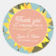 Moderne, boho, botanique, bleu poussiéreux et mariage pêche merci sticker pour les faveurs avec l'élégant coeur de corde or, tournesol et script tendance.