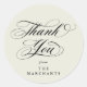 Un autocollant/enveloppe simple et élégant "Merci" pour coordonner avec mes cartes de remerciement mariages avec une police de script classique et swashy. Le texte modèle est entièrement modifiable, de sorte que le style, la taille, la couleur et le placement de la police peuvent être modifiés. L'image texte "Merci" peut être redimensionnée et déplacée à l'aide des outils d'édition. Aussi disponible en autocollant carré.