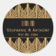 Jaune or et noir art déco rétro motif mariage merci stickers. Style années 20.