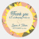 Moderne, boho, botanique, jaune et pêche fuzz mariage Merci sticker pour les faveurs avec coeur de corde or élégant, tournesol et script tendance.