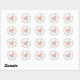 Un coeur rose brillant sur un autocollant en cercle blanc, avec vos propres noms, et les mots Merci