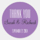 Un mariage simple et élégant, merci autocollants en violet. Personnalisez avec les noms des mariés et des mariés et la date du mariage. Tous les textes sont personnalisables. Vous pouvez modifier la police de texte, la taille et la couleur à l'aide de l'option de modification. Veuillez contacter pour toute aide sur la personnalisation ou si vous avez besoin d'une autre couleur pour correspondre à vos couleurs mariages.
