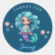 Soirée Anniversaire de enfant de sirène classique Sticker ronde mignonne Fête d'anniversaire pour filles thème de sirène grâce autocollant avec aquarelle illustration d'une sirène quelques fleurs roses autour. Le texte dit "Merci de vous être joint".