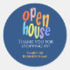 Un autocollant coloré et amusant ouvert maison de remerciement. Cet autocollant fabuleux présente une typographie moderne audacieuse sur un arrière - plan bleu. Facile à personnaliser avec votre propre nom et message.