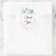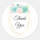 sticker Merci avec un bouquet succulent aquarelle. Ces fleurs succulentes, feuilles et sprigs sont d'une douce couleur rose pastel et vert menthe. Un cadre géométrique tendance avec une bordure en feuille d'or imitant entoure votre texte.