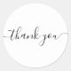 Stickers Classic Rond Merci noir et blanc élégant script élégant. Disponible en différentes formes, styles et tailles. Élégant texte de script noir personnalisable, arrière - plan blanc. Idéal pour les cadeaux et les faveurs.