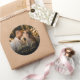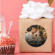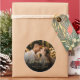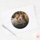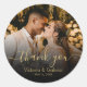 Moderne Jolie Noir et Or Calligraphie Script Mariage Merci | Couple Photo autocollant/étiquette pour votre service cadeau. Doté d'une élégante calligraphie manuscrite superposée avec du texte "Merci" sur dégradé noir.