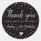 Parties scintillant d'or Rose moderne Élégant Noir 21e (ou toute année) Merci pour venir à ma fête Anniversaire Monogramme personnalisé Enveloppe personnalisée ou emballage cadeau phoque (sticker Merci). Ce design féminin Fille Adulte Fête d'anniversaire avec un élégant script de calligraphie "Merci"/"Merci" texte, petit motif de coeur et cadre de parties scintillant en or rose diamant sur arrière - plan noir. Personnalisez le nom du monogramme, date d'anniversaire. Idéal pour une fête d'anniversaire féminine adulte, capture parfaitement l'essence d'une fête d'anniversaire rose moderne en or et en parties scintillant rose vif scintillant.