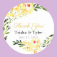 Sticker Rond Merci, Noms et Date Jaune Fleurs W/C Mariage