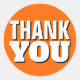 Un grand sceau d'enveloppe ou pour décorer des sacs de faveur pour envoyer à la maison avec vos invités. L'autocollant Merci orange a un arrière - plan orange avec lettrage blanc.
