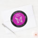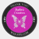 Sticker Rond Merci, Papillon Diamant, Noir & Fuchsia