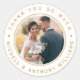 Cet autocollant de remerciement mariage présente des cadres en cercle doré avec une photo et une simple calligraphie.
