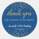Sticker Rond Merci Pour Arrivée Gold Confetti Bleu Anniversaire