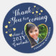 Créez des autocollants de Merci bleu marine uniques pour la fête de Graduation favorise avec un design élégant qui comprend une photo en forme de coeur, le nom du Graduate et l'année. Utilisez le modèle pour taper le nom et l'année de votre diplôme et télécharger une photo.
