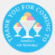 Merci pour les enfants à venir crème glacée Anniversaire fête Classic Round Sticker. Design de crème glacée sorbet amusant avec 3 boules. Grand comme le scellant d'enveloppe, les joints de sac cadeau, la partie favorise les scellés et plus. Joli design joyeux avec illustration colorée.