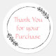 Autocollant rond avec les mots "Merci pour votre achat". Le cadre de la feuille arrondie entoure le texte. Style de police de texte et couleur, peut être customisé à vos détails.