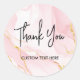 Créez vos propres autocollants de remerciement personnalisés avec une typographie script élégante et un fond en marbre rose blush aquarelle.