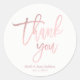 Sticker Rond MERCI Rose Or Feuille Moderne Écriture Mariage